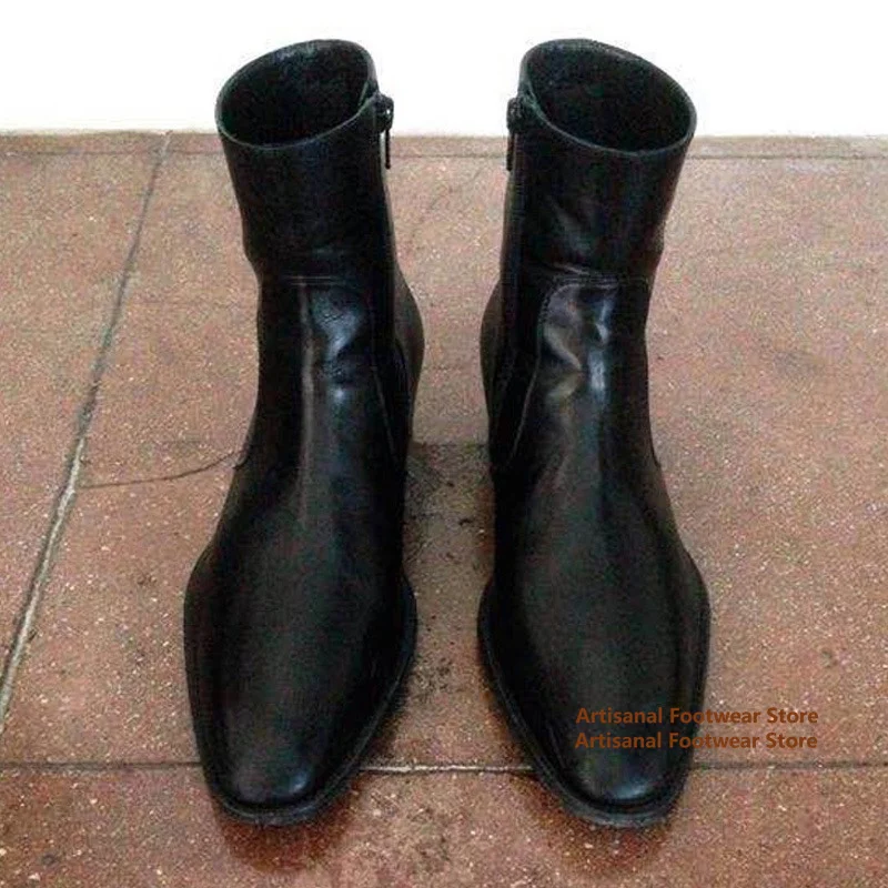 High-Top Chelsea Boots for Men Height Increasing Side Zipper Boots Handmade Custom Handsome Men Shoes Designer Men Boots