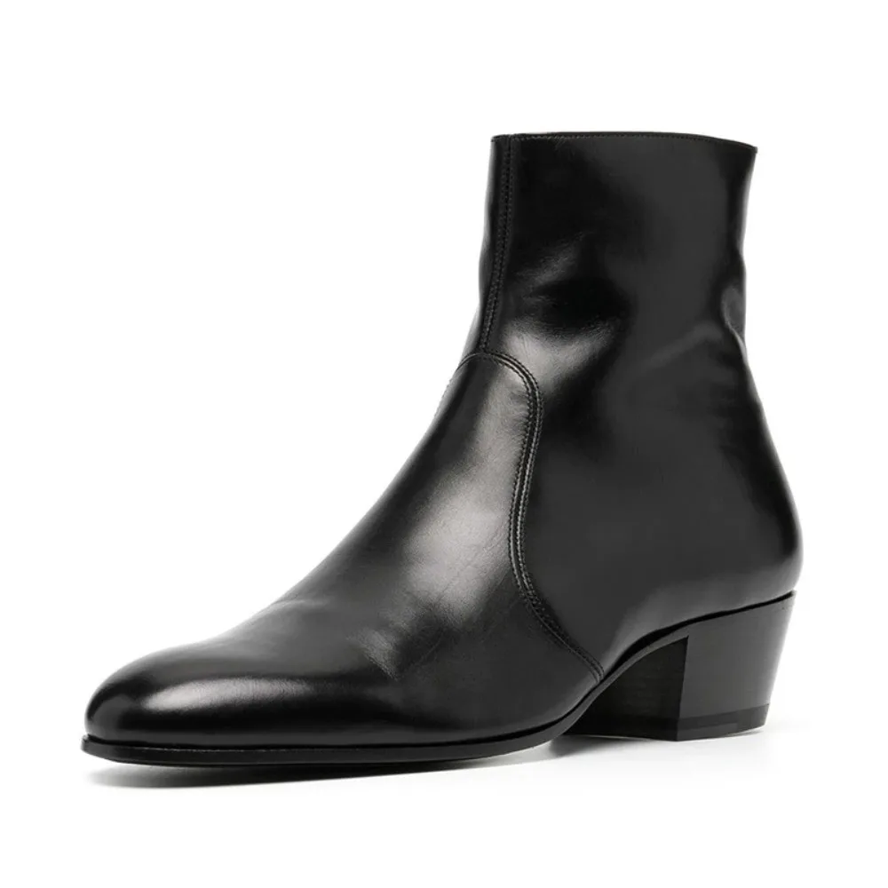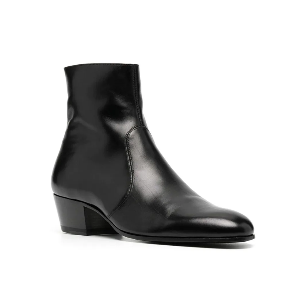 Man Chelsea Boots Genuine Leather Ankle Business Round Toe High Heels Mens Boots Size 37-46 Men Shoes Mens Boots