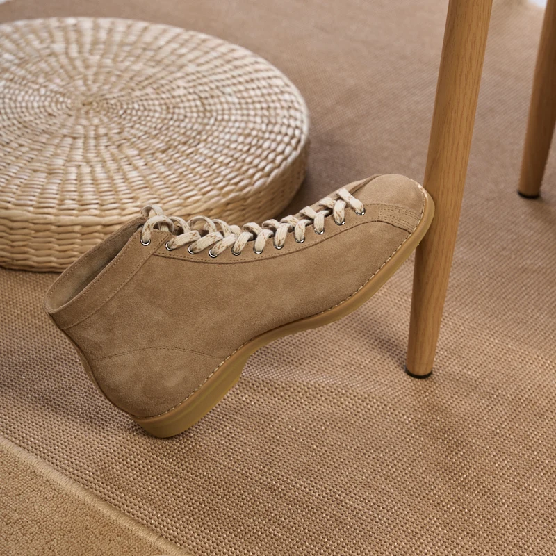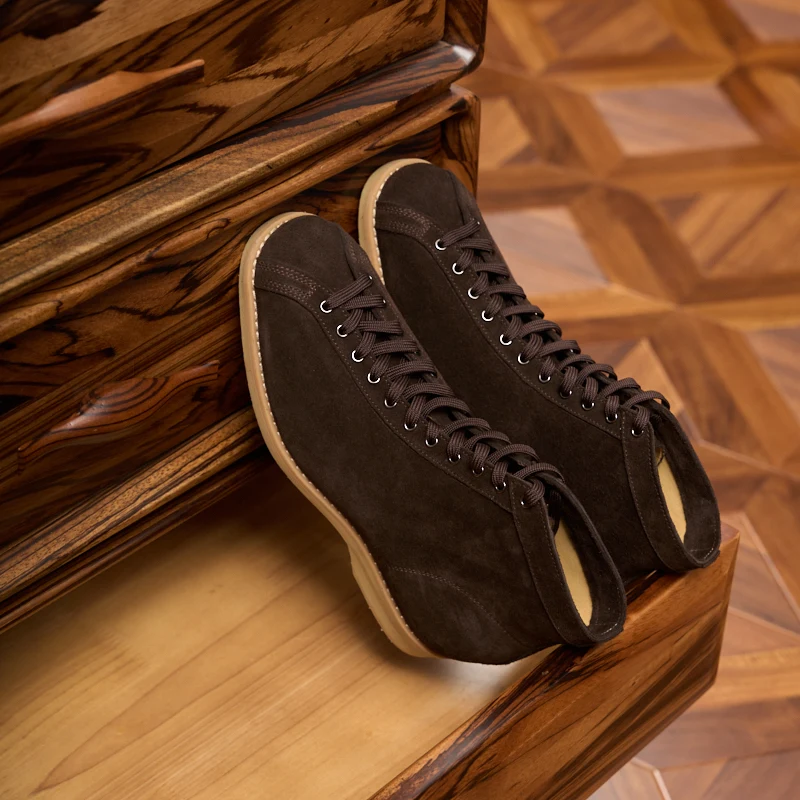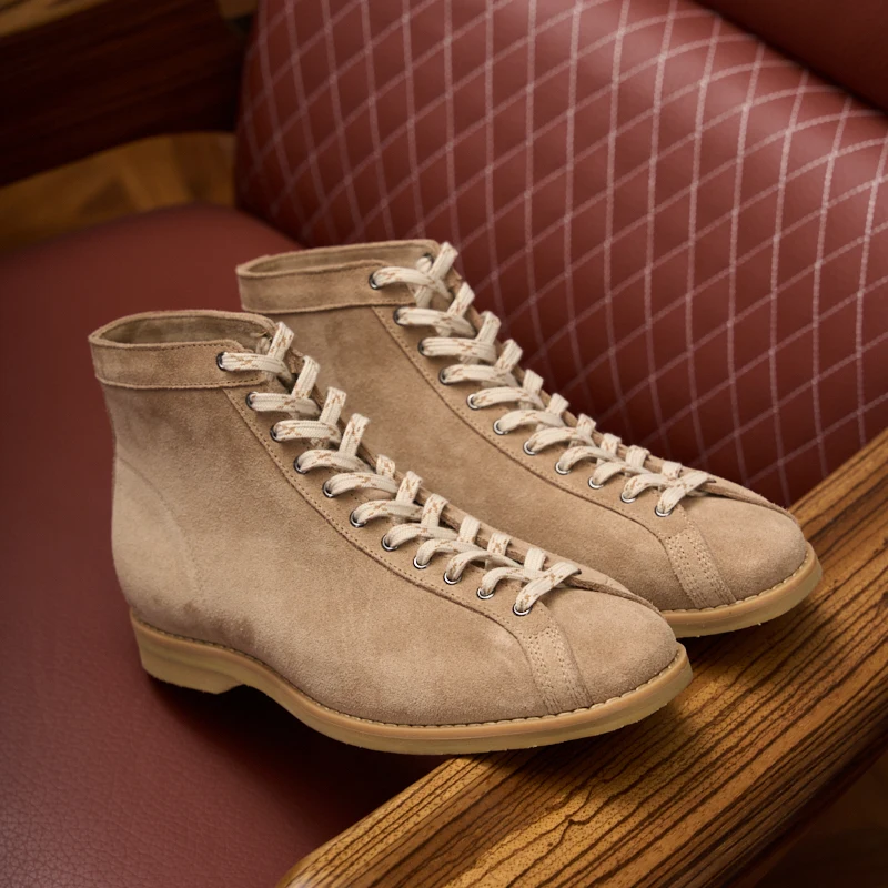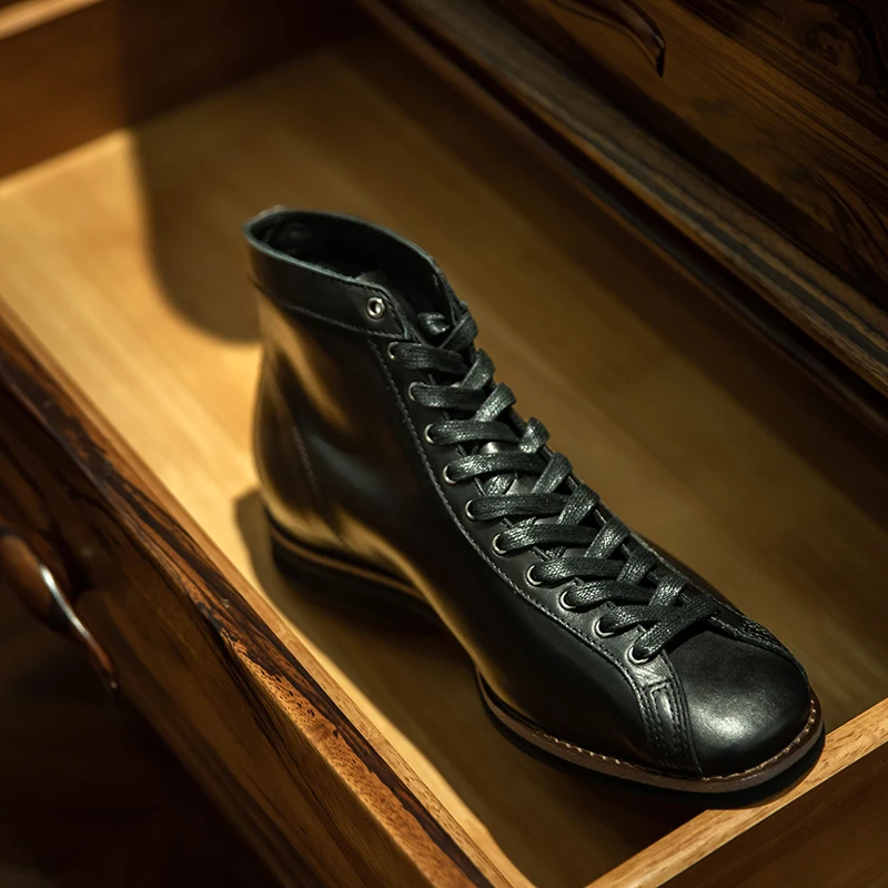 Men’s Handmade Leather Ankle Boots Vintage Lace-Up High Top Motorcycle Shoes with Black Stitching Detail