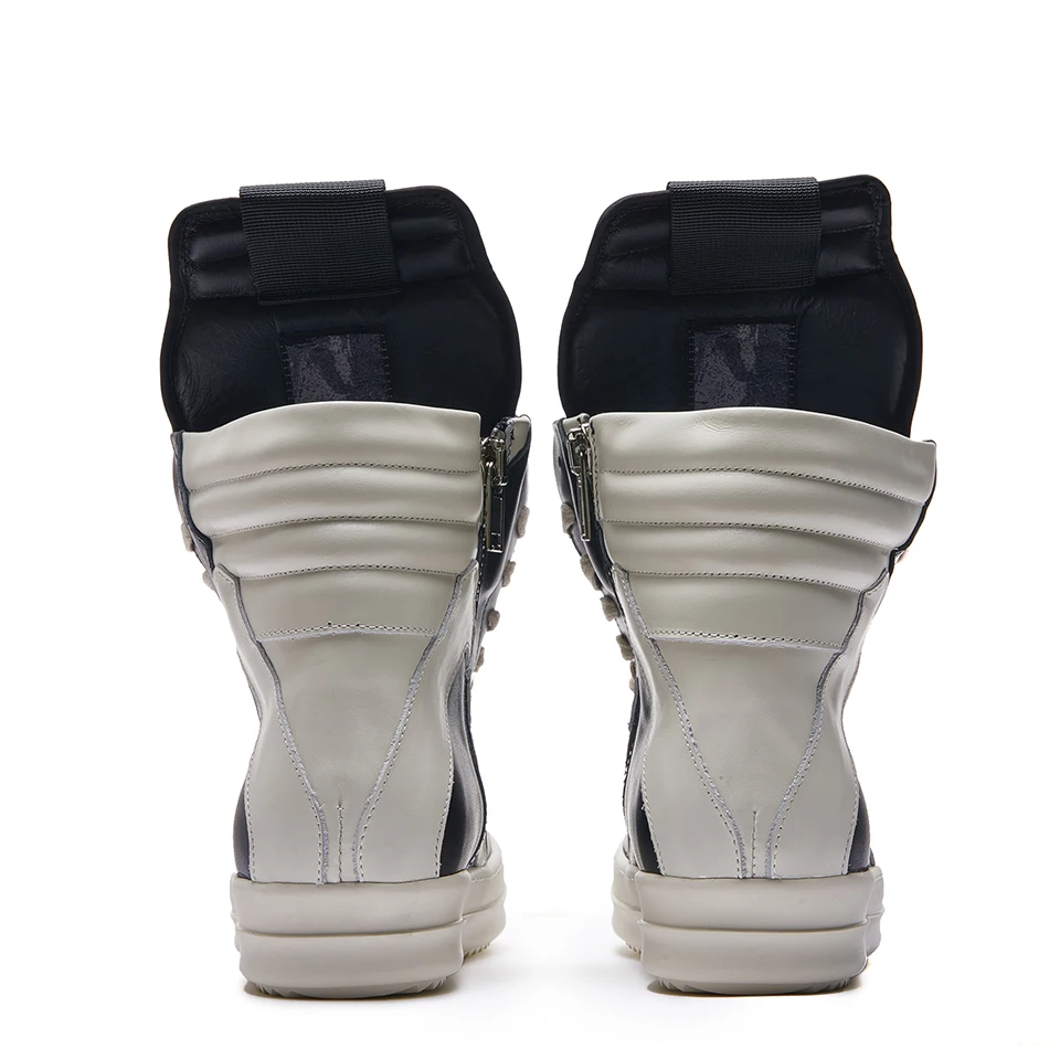 Men’s Leather High Top Sneakers – Lace-Up Zipper Retro Boots, Thick Sole Designer Casual Shoes, Hip Hop Style for Women