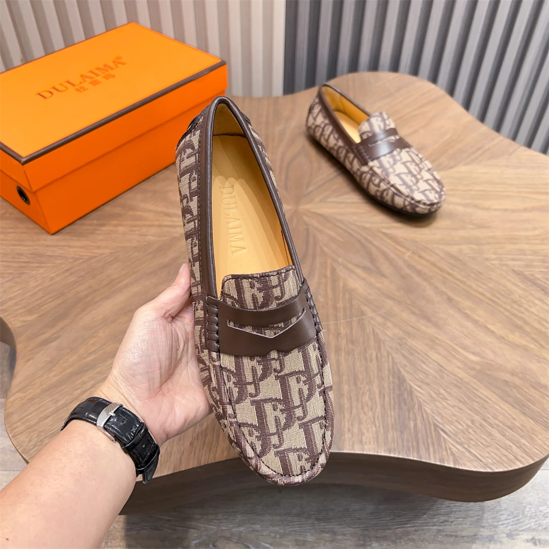 Presbyopic Lazy Driving Shoes Men’s Genuine Leather Slip-On New Thick-Soled Casual Leather Shoes British Style Patent Leather Loafers for Men