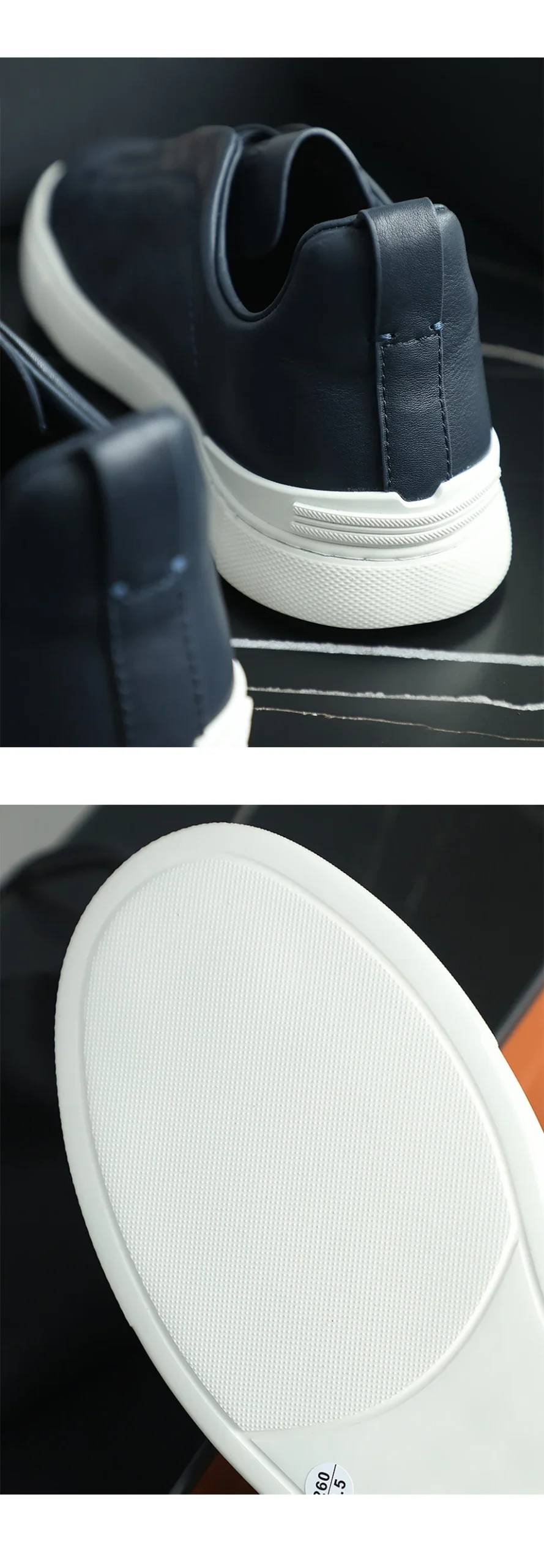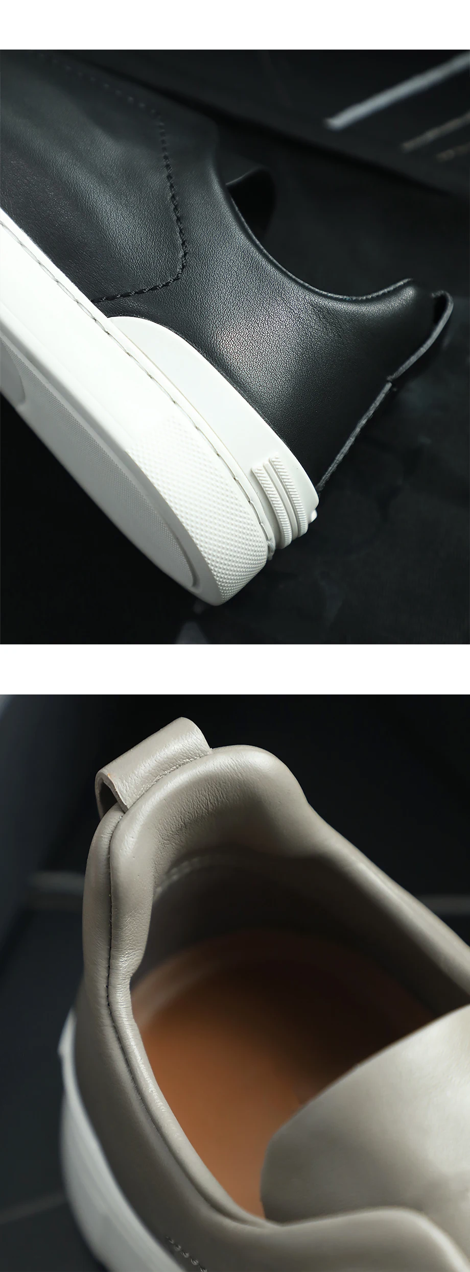 Real leather men’s casual skateboarding shoes hiking flat footed low top sports shoes men’s off white loafers lazy white shoes