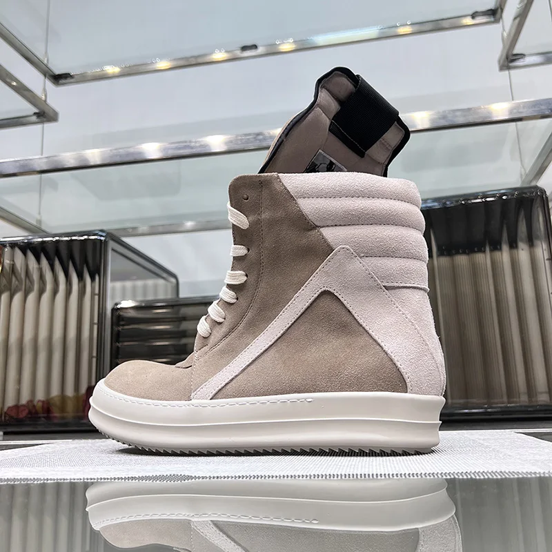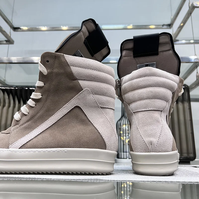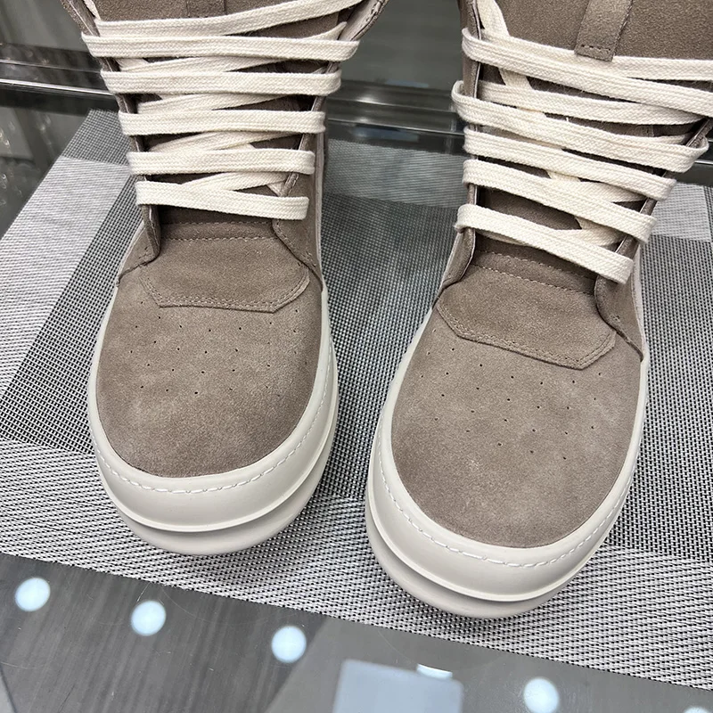 Ro Shoes Men Leather 2025 New Earthy Grey Cow Suede Lace Up Zipper Thick Sole Luxury Geo Women Street Hip-hop Casual Flat Boots